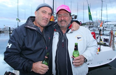 These two clearly go back a bit; having interviewed both skippers Crosbie Lorimer asked if he could take a shot of them together; as Ed Psaltis walked across to Warwick's boat for the picture, Warwick suggested that perhaps the photo should be taken on the end of the pontoon, 'Why don't we take the shot up there' he said, pointing forward on the boat and adding with a laugh 'that way Ed will be able to see what the front of our boat looks like'!