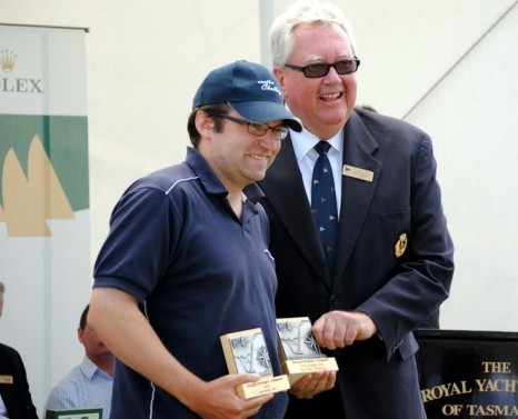 Chris Lewin (Another Challenge) received two CYCA trophies from Commodore Garry Linacre