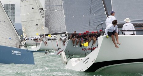Day 1 - here in Pattaya Thailand had mixed results for us on GTS43 Walawala 2. With the breeze in for the first windward leeward we had a great start on the weather end and sailed very well up the beat to be 2nd to HI Fi around the mark, just ahead of the GP 42 and also Ker 40.